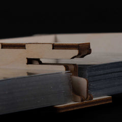 First, inspect your card sleeves for any dust or dirt. Remove particles as necessary. Next, hold your card sleeve between your thumb and index finger and gently slide the back and front sides together to form a small pocket. Slide your card into the pocket and push down until your card is fully covered.