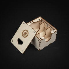 If you want to store your game cards in a convenient way, this is made for you! The MagneBox holds your cards between dividers, which you can adjust. The lid is held in place by magnets, which make sure that none of your valuable cards get lost at any time. Choose the long or the short version for either the US/EU mini cards or the Standard sized cards (Magic, EU/US)