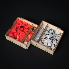 The Root Universe has expanded with some exciting new expansions, which are craving to be organized. The Marauder Organizer holds 3 new expansions of Root (see below at the ’Supports’ section) in one of the expansion boxes, although with some lid-lift.