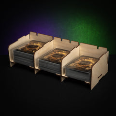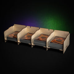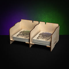If you want to keep your cards organized during play and not let those sleeved cards slide all over the table you might want to use these Stackable Card Holders.