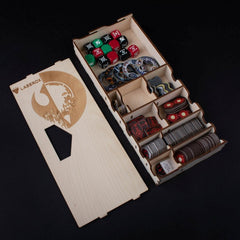 Are you part of the Galactic Empire and have a giant fleet at your command or did you join the Rebell Alliance to gather intel and resources for the Jedi? With our Rebell Organizer for Star Wars: Rebellion this epic clash of the two forces will be much more organized. With this organizer you are ready to play within 5 minutes and tear down after game does not take hours, but only a few minutes. It also helps during gameplay, by organizing your forces, miniatures and cards.
