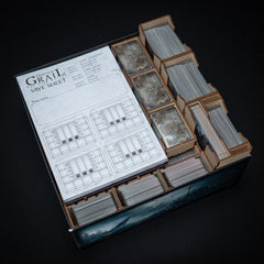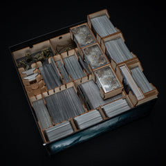 Explore both before and after the Fall of Avalon, spanning 1000 years with Age of Legends and Last Knight Campaigns, or take your favourite heroes on a last, one-way mission to mysterious Homelands after finishing any of the other three large campaigns. With our Tainted Expansion Organizer, you can store 2 big campaigns and the Read Death Expansion in the box of Tainted Grail: Age of Legends Last Knight Campaigns. The design of the organizer makes the setup and clean up time much shorter, and let's you explore the best way of organizing your cards. The main cardholder is a modular layout with 2 variable walls, 4 big dividers and 4 small dividers (another grace of the design, that 2 dividers can be set right next to eachother with the smart solution of the puzzle-like tabs)