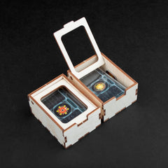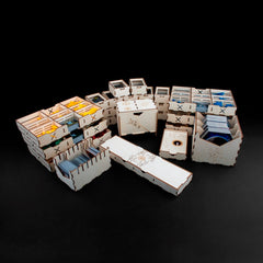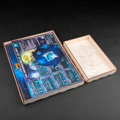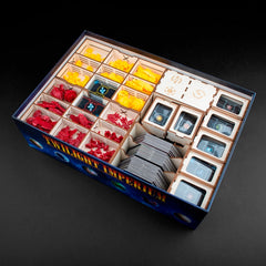 Twilight Imperium (Fourth Edition) is a game of galactic conquest in which three to six players take on the role of one of seventeen factions vying for galactic domination through military might, political maneuvering, and economic bargaining. Every faction offers a completely different play experience, from the wormhole-hopping Ghosts of Creuss to the Emirates of Hacan, masters of trade and economics. Our Twilight Treasury was designed to hold the game in order. Make yourself game ready in less than 5 minutes, since everything is neatly organized inside your gamebox with this insert.