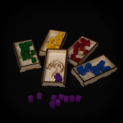 Enhance your Wyrmspan gaming experience with the Wyrmspan Organizer, meticulously crafted to house every game component in splendid order. Multiple resource holders ensure each player has essentials within easy reach, while the cave card holder doubles as a practical nest for your dragon cards. Adorned with intricate designs reminiscent of dragon scales and caves, including an exquisite mother dragon-shaped holder for the round marker, the organizer immerses you deeper into the enchanting world of Wyrmspan, while keeping your gamebox and tabletop organized.