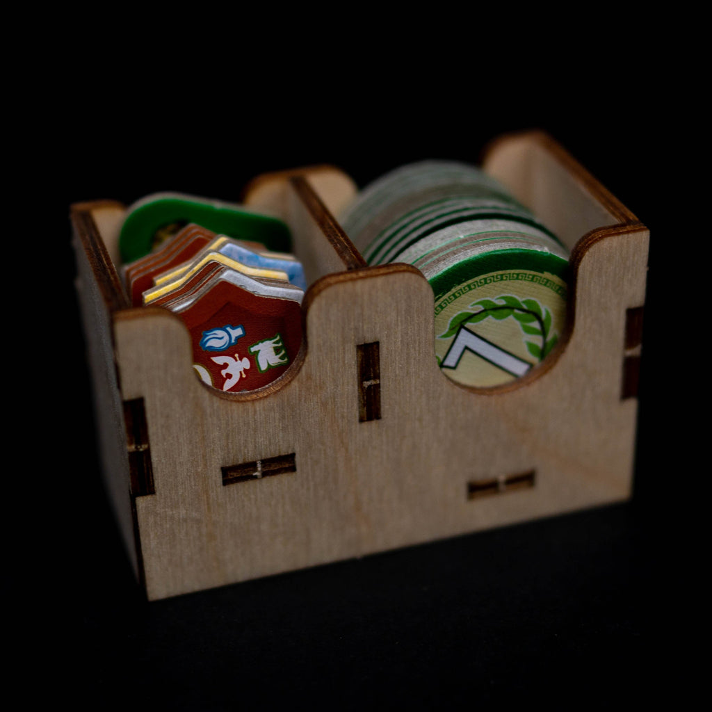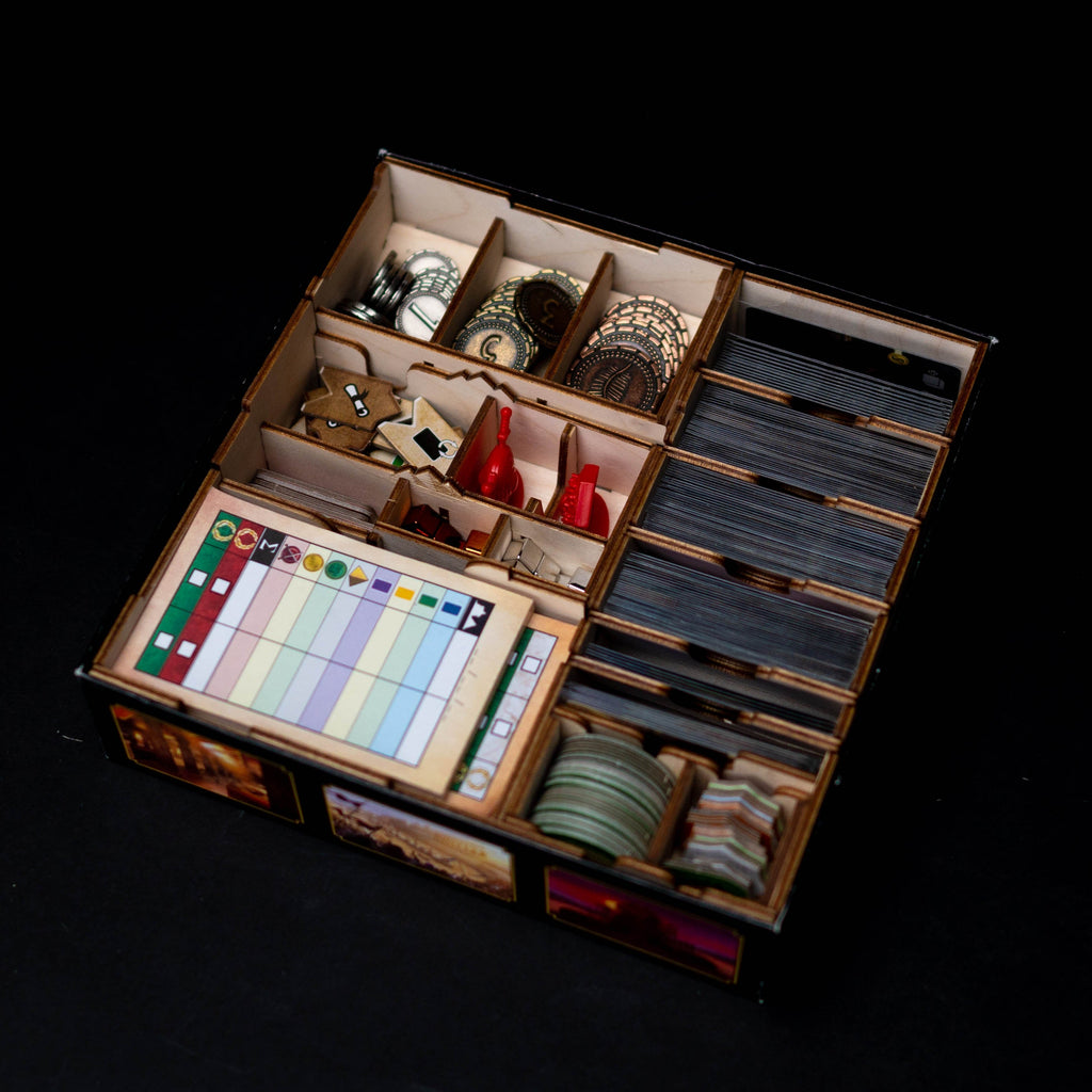 7 Wonders Duel is one of the best 2 player games currently on the market. With its Pantheon expansion it offers a great challenge for those two players. Our insert holds as well as the base game as the expansion in one box. Everything neatly stored and storted, so setup is quick and easy.