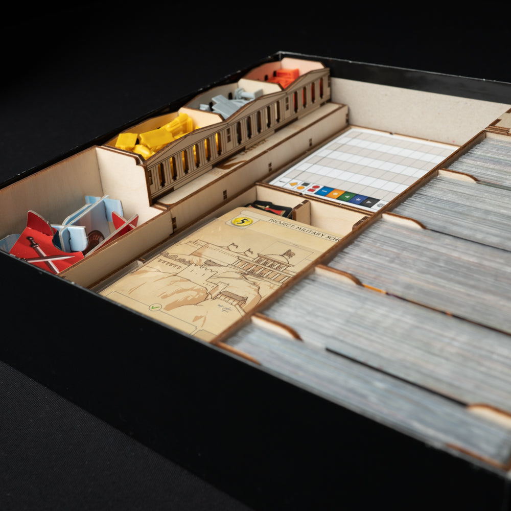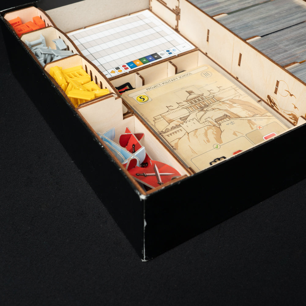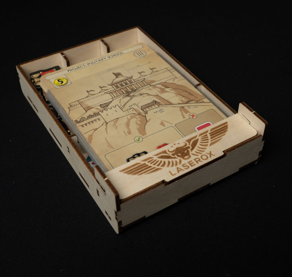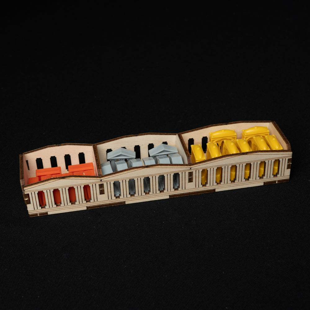Upgrade your 7 Wonders experience with the Edifice Upgrade Kit, a meticulously crafted birch plywood organizer. With laser-cut precision, it seamlessly integrates the newest expansion into your base game box, replacing elements to accommodate the added content while ensuring easy access with engraved icons for swift organization. Finally, revel in the convenience of storing your entire game in one box, bringing the wonders of civilization-building to your fingertips like never before.