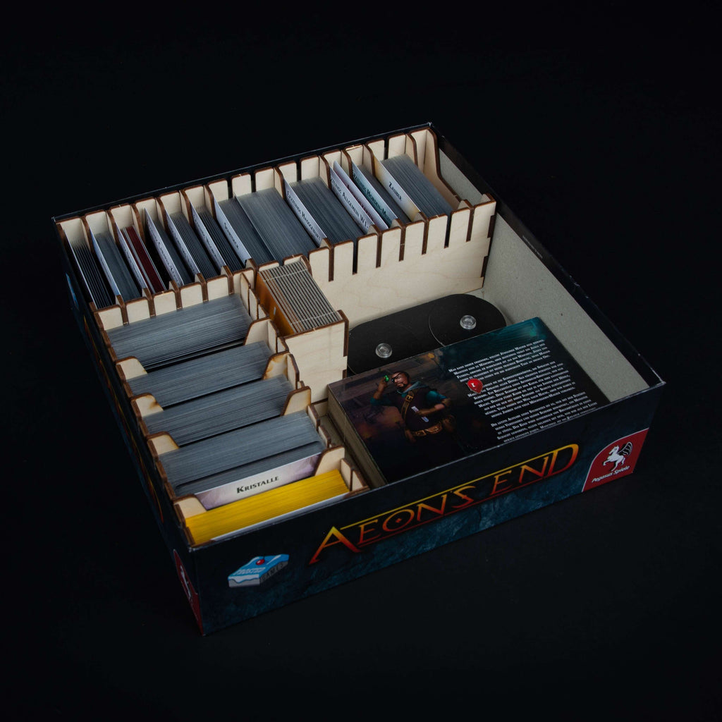 Aeon's End is a cooperative game that explores the deckbuilding genre with a number of innovative mechanisms, including a variable turn order system that simulates the chaos of an attack, and deck management rules that require careful planning with every discarded card. Players will struggle to defend Gravehold from The Nameless and their hordes using unique abilities, powerful spells, and, most importantly of all, their collective wits.