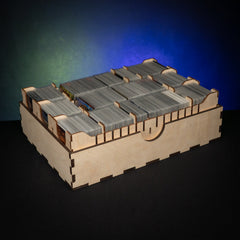 This is THE box that you have been waiting for! Store your favourite card game in a sturdy box with variable dividers! It fits 1500 premium sleeved cards or 3000 unsleeved cards. Note: if you use the dividers, keep in mind, the box will fit less cards (approximately 40 less sleeved and 80 less unsleeved cards).