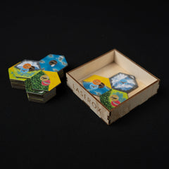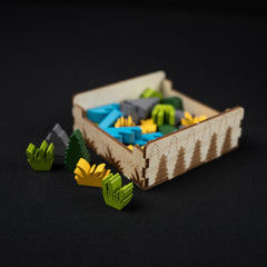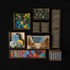 Elevate your Cascadia experience with this handy organizer that holds both the base game and the Landmarks expansion in one box. It ensures smooth and quick setup, perfectly arranging all your cards, tiles, and tokens, so you can dive right into creating your vibrant habitats buzzing with wildlife. With beautiful engravings that immerse you even deeper into the serene world of Cascadia, this organizer is a must-have for every nature-loving strategist.