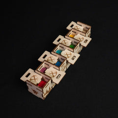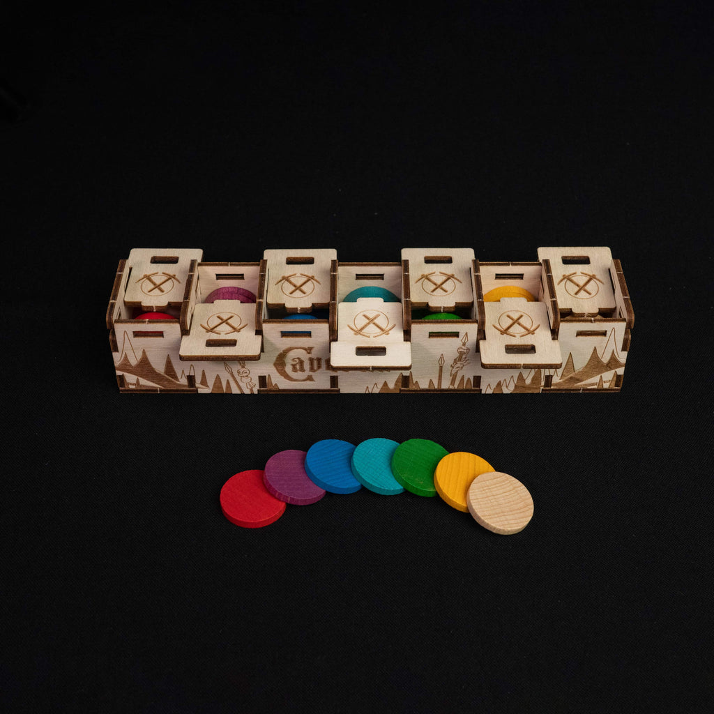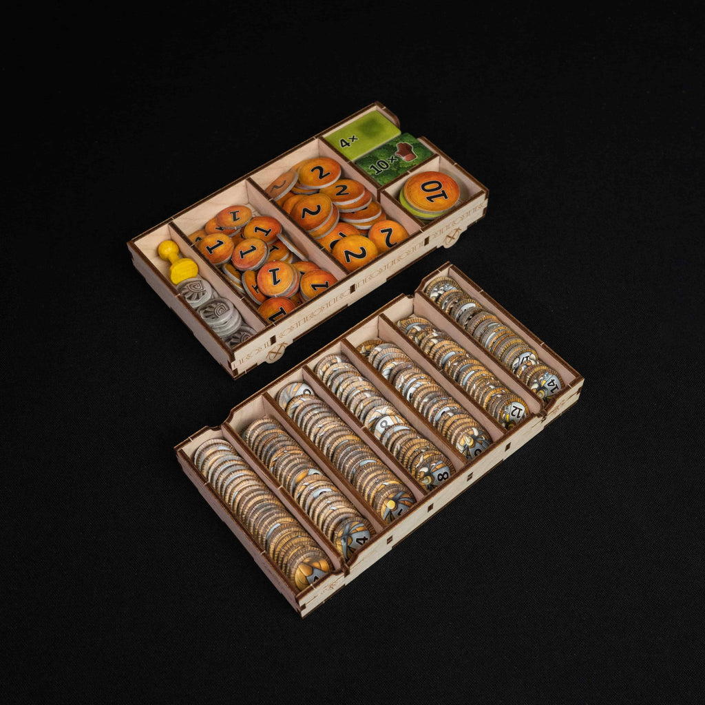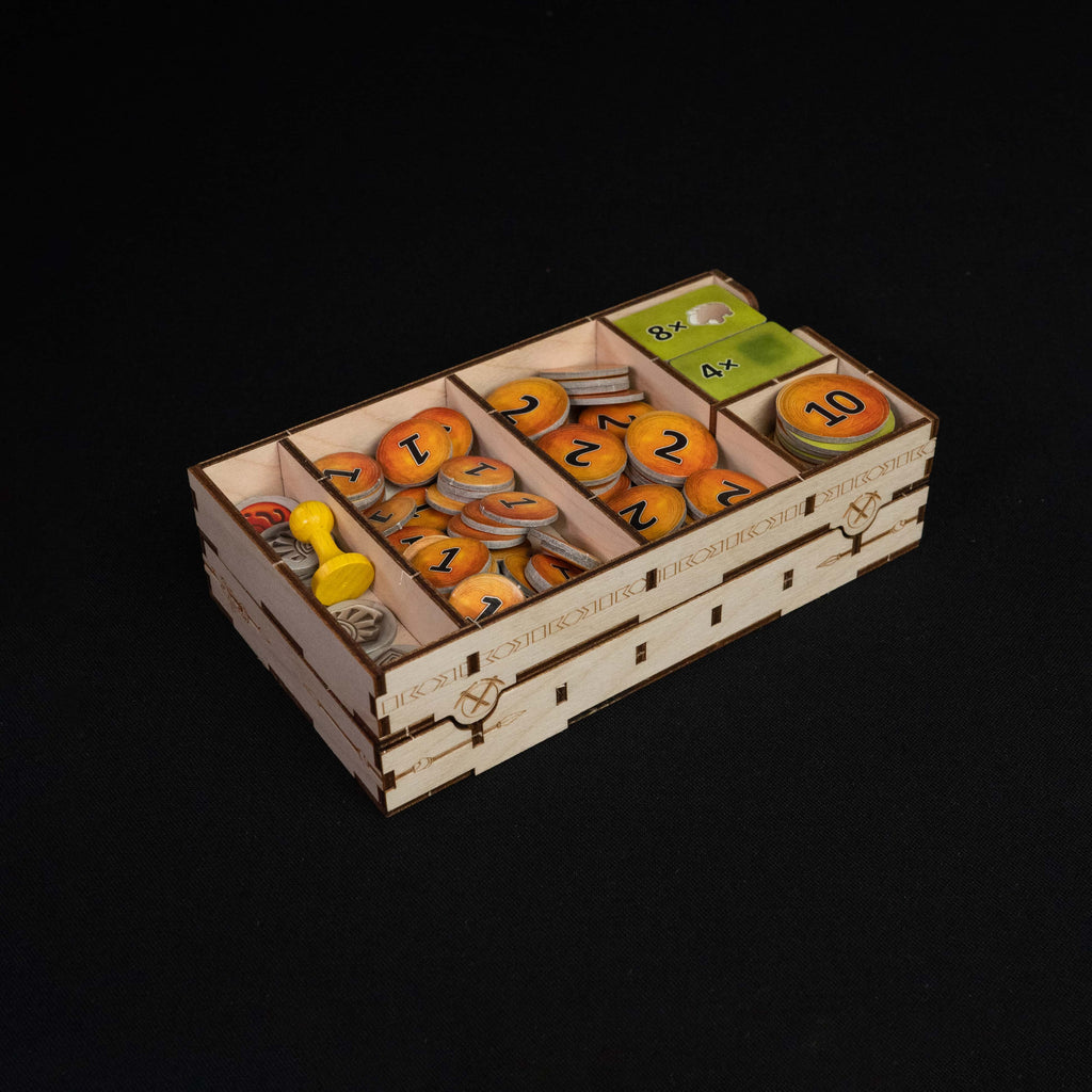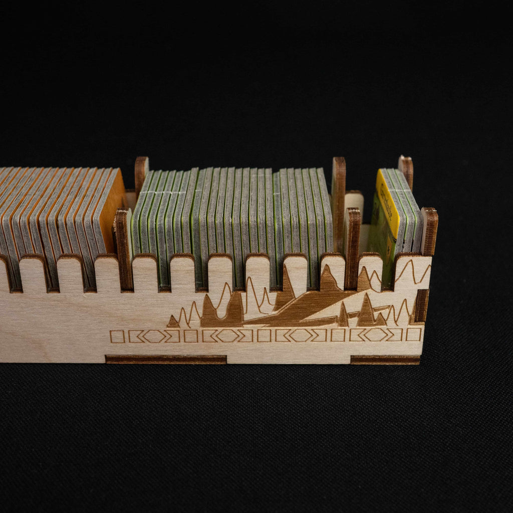 Discover the ultimate Caverna experience with our redesigned game organizer, an upgrade of our original model tailored for both the base game and The Forgotten Folk expansion. Featuring a refreshed storage system, more refined design, and easier assembly, this organizer keeps every component snugly arranged in beautifully themed compartments inspired by the game’s mountain and forest landscapes. Enjoy faster setup, smoother gameplay, and seamless cleanup, letting you focus on building your dwarven empire without a hitch.