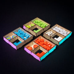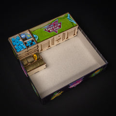 Combine ancient DNA sequences and revive the greatest dinosaurs of the Jurassic era. And then, present them in your attraction park! Compete to lure the most visitors in your park by presenting the most extraordinary selection of dinosaurs, but also take care of security management, otherwise, your visitors can easily get eaten. To bring orderliness into the big pile of components that come with this game, we designed the Dinosaur Organizer. Not only will it speed up your game setup and cleanup time, but it will also enhance the look of your gaming table with its thematic decorations and its giving a neat storage to the game components that woud otherwise be scattered around the table.