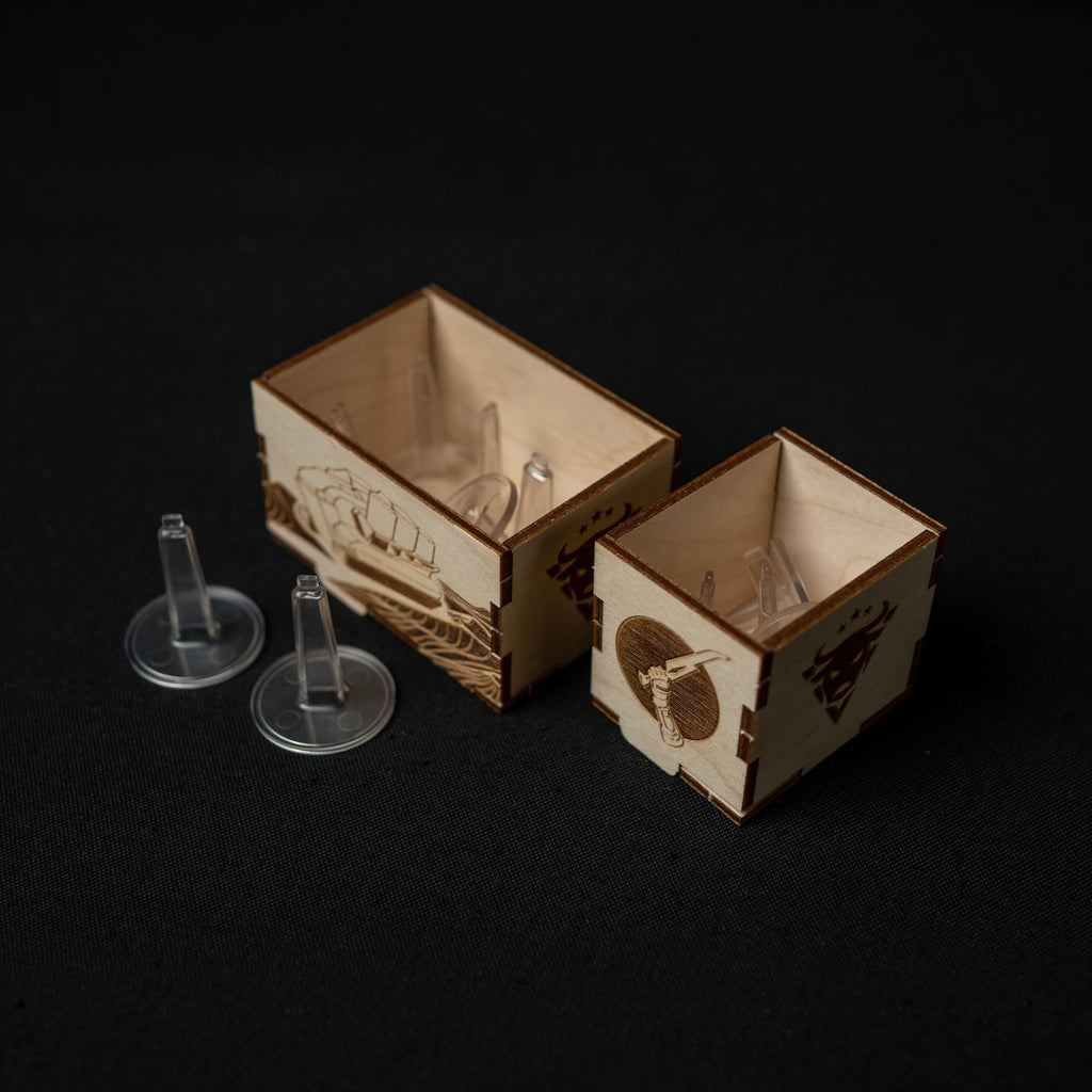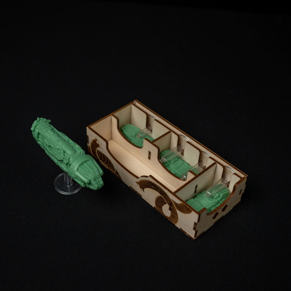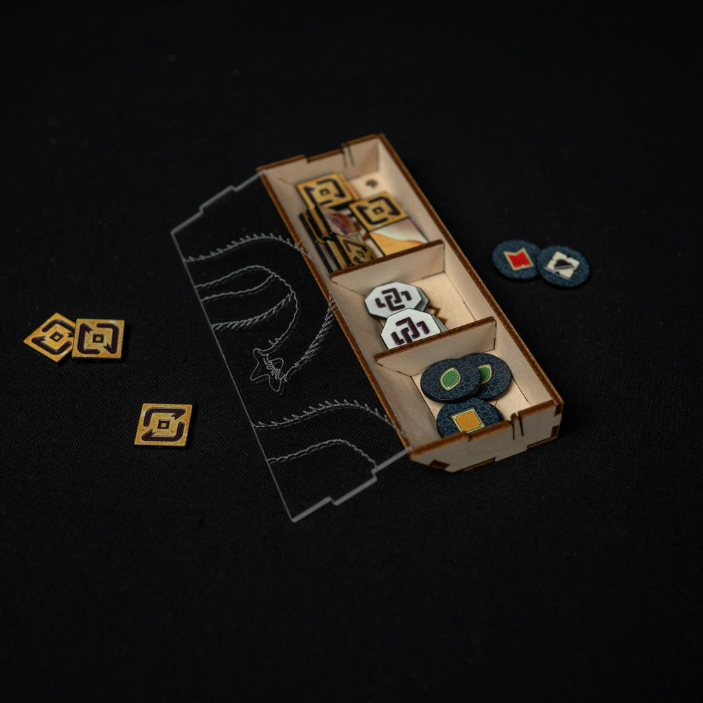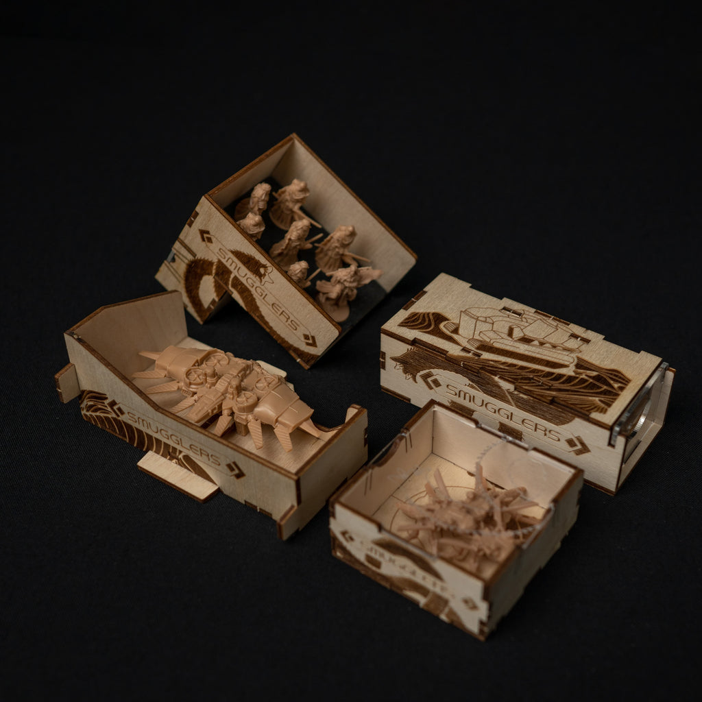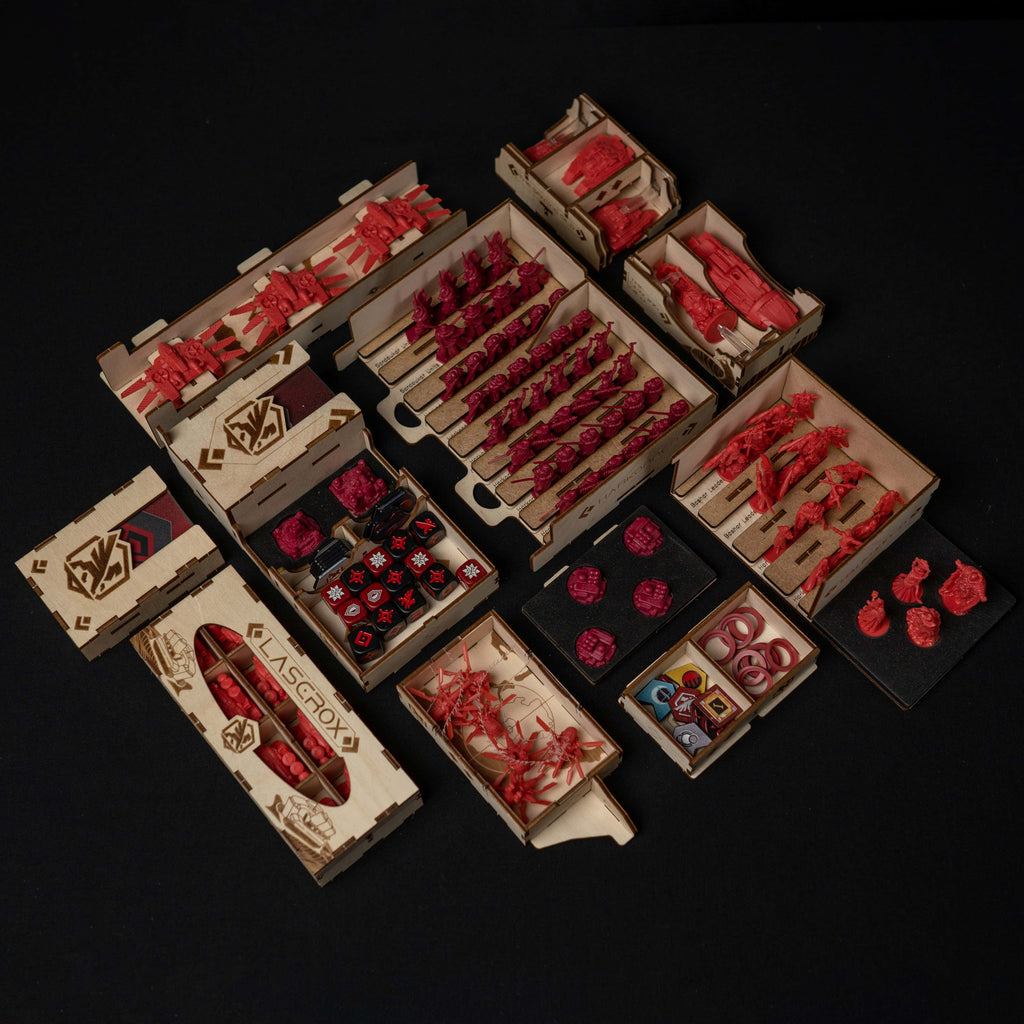 Enhance your Dune: War for Arrakis experience with a stunning organizer that brings order to the chaos of the desert world. Featuring intricately engraved wooden holders and acrylic box lids adorned with thematic details, it neatly stores all game components, including miniatures and two expansions, while evoking the vast sands of Arrakis. With swift setup and seamless gameplay, this organizer ensures you're ready for battle in the blink of an eye, leaving you fully immersed in the struggle for Spice.