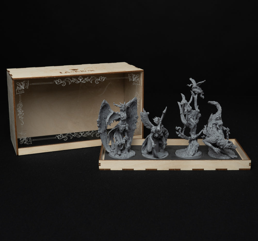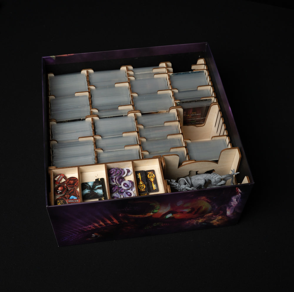 Step into the organized realm of Etherfields with the Etherfields Organizer, a dreamer's companion in navigating the twists and turns of the game. Safely store all cards, tokens, and miniatures, ensuring every element is readily accessible as you delve into the dreamy landscapes. With a special showcase for the impressive boss figures, this organizer seamlessly merges function with the surreal aesthetic of Etherfields, bringing order to your journey through dreams and nightmares alike.