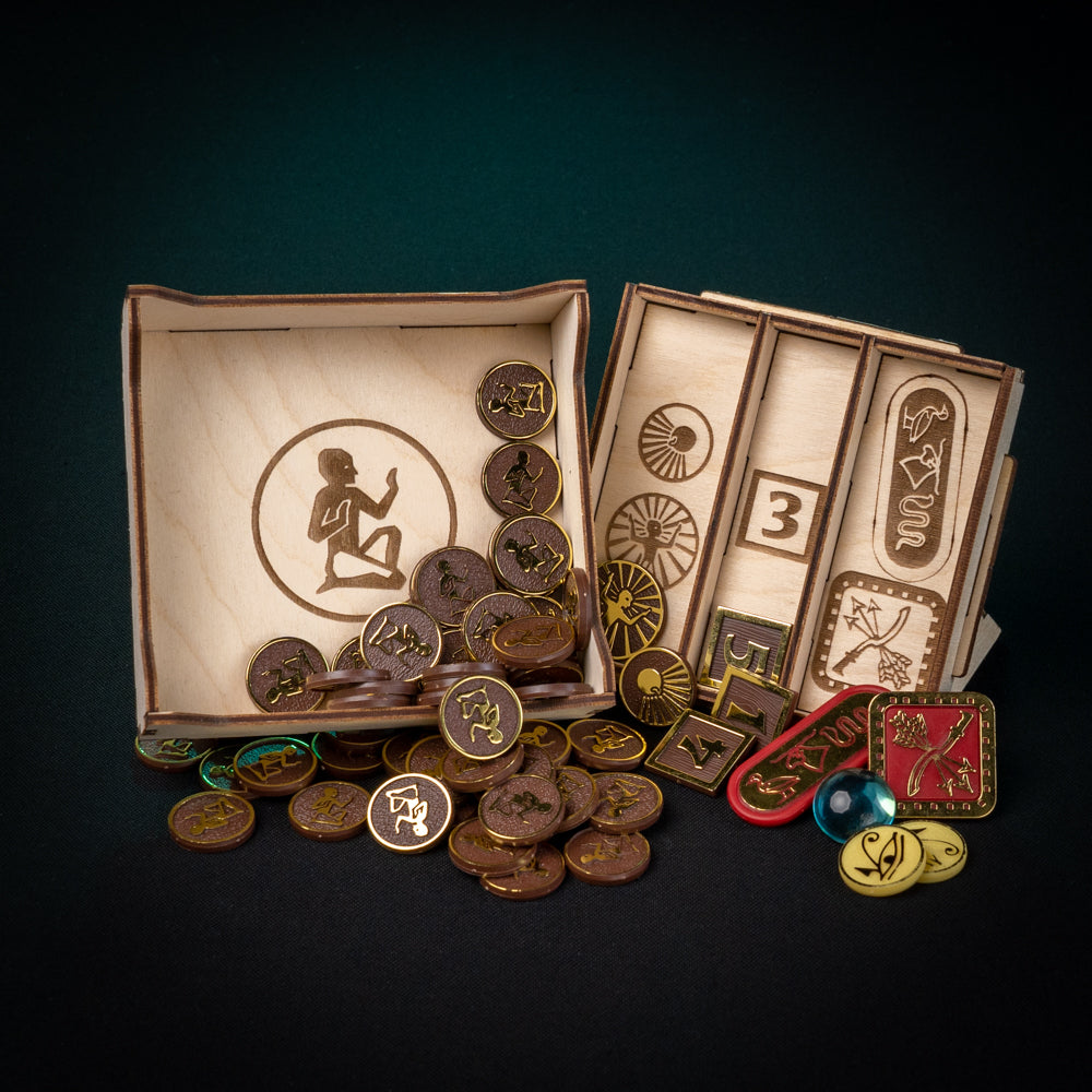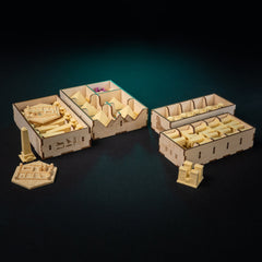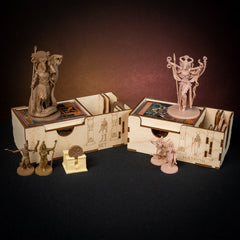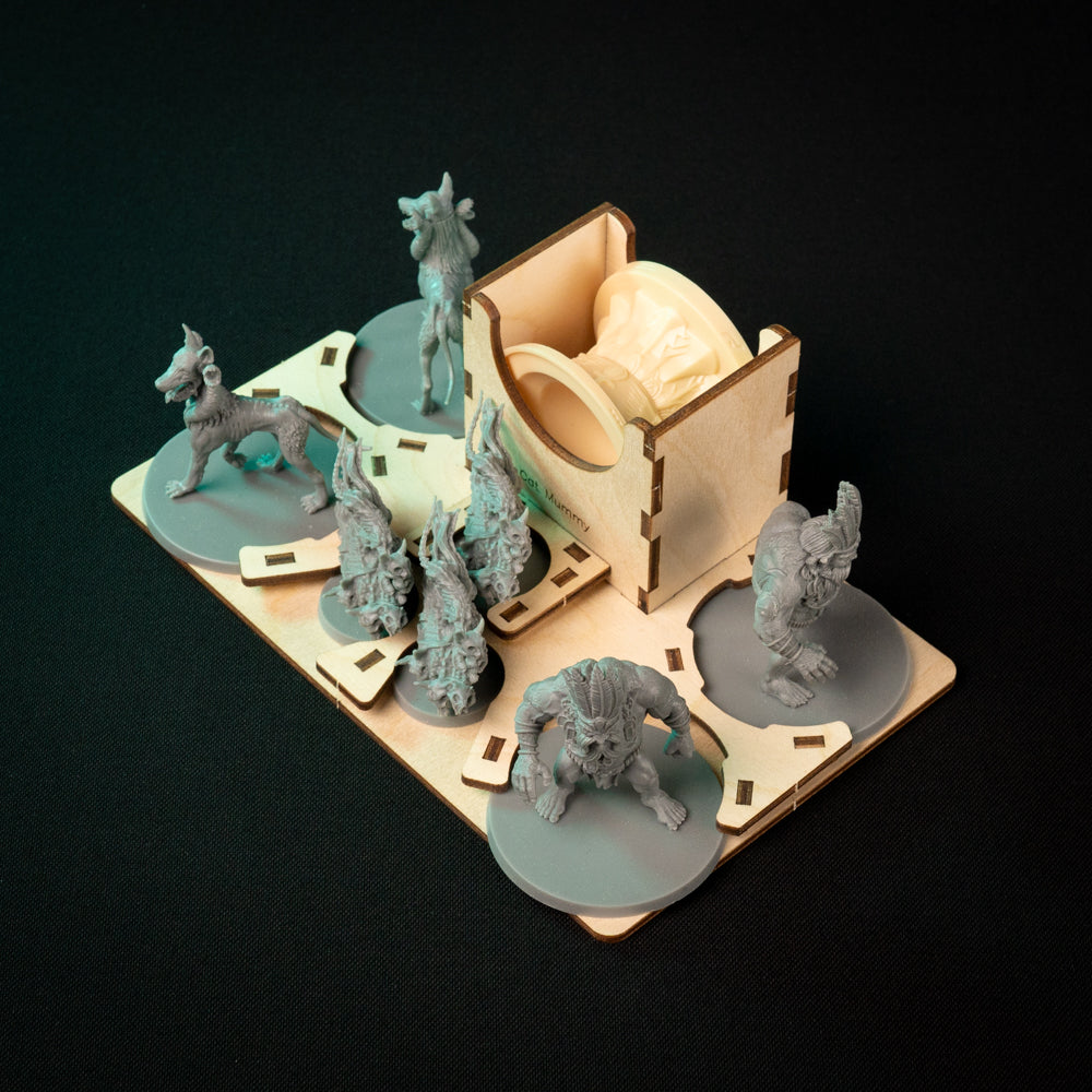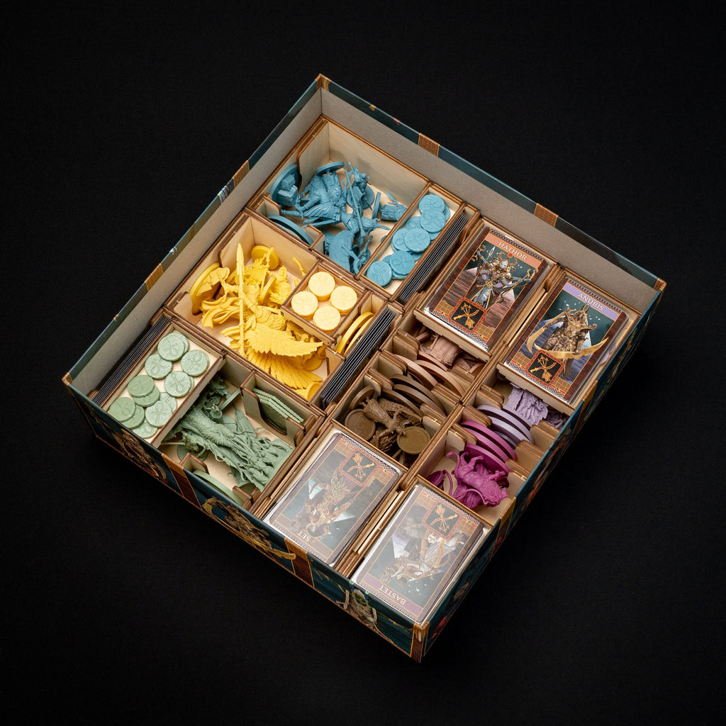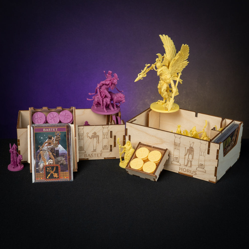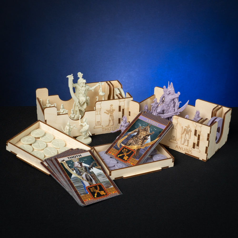 This game is big and rich in components enough in itself – not to mention the expansions which add even more to its hugeness – and the setup time is quite lengty as well. So we took on the challenge to reduce both and made the Ankh Organizer that not only provides neat storage for the game components, but also for all miniatures. You’ll save a lot not just in space, but also on setup and cleanup time and can devote more time to gaming itself.