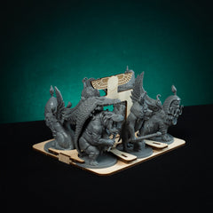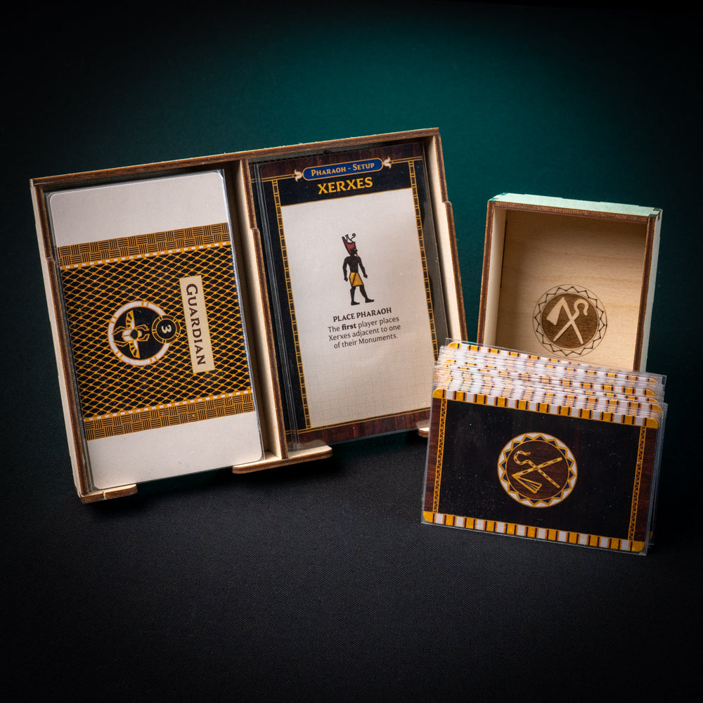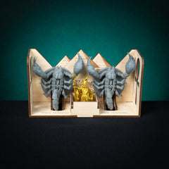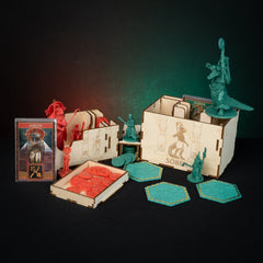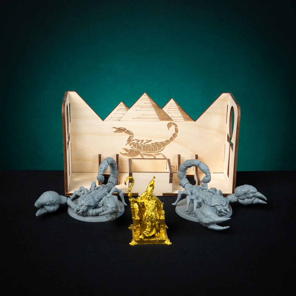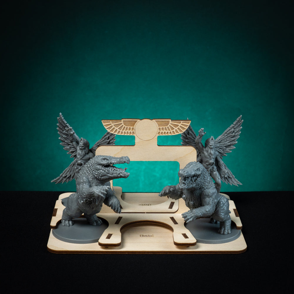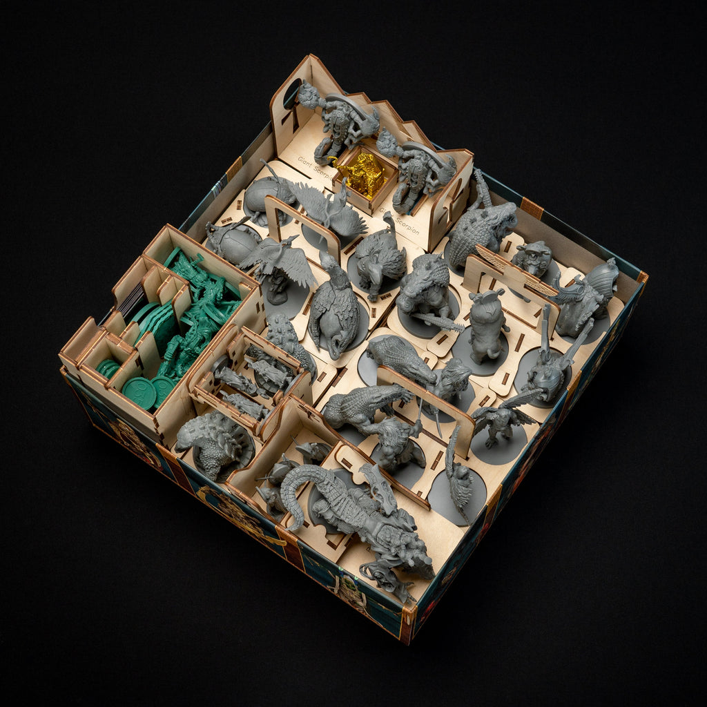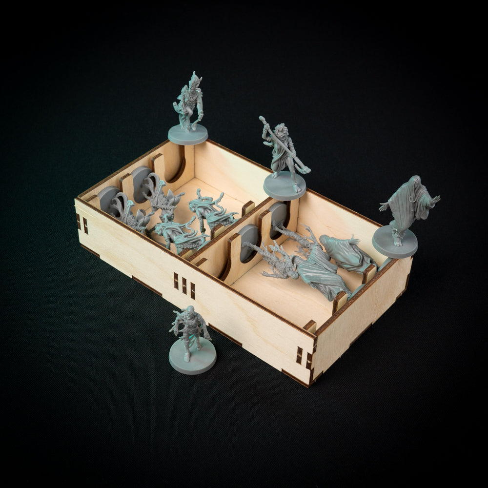 This game is big and rich in components enough in itself – not to mention the expansions which add even more to its hugeness – and the setup time is quite lengty as well. So we took on the challenge to reduce both and made the Ankh Organizer that not only provides neat storage for the game components, but also for all miniatures. You’ll save a lot not just in space, but also on setup and cleanup time and can devote more time to gaming itself.