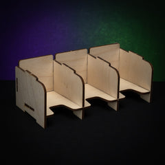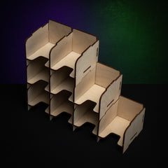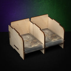 If you want to keep your cards organized during play and not let those sleeved cards slide all over the table you might want to use these Stackable Card Holders.