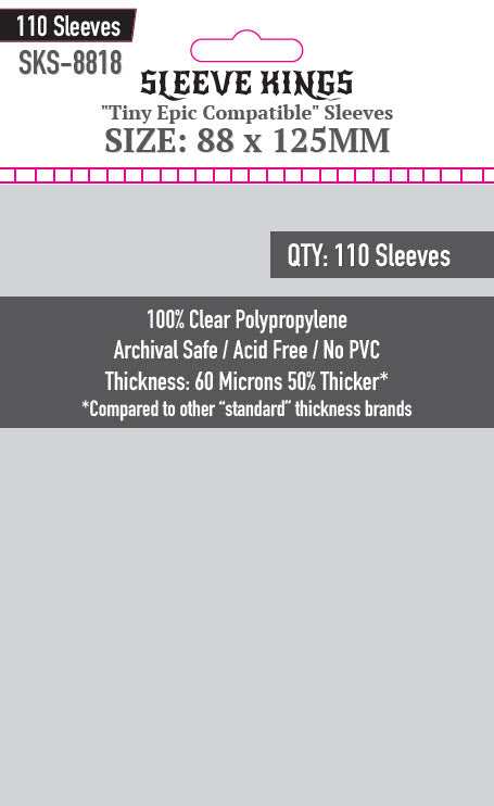 ** Note Game Titles and their intellectual property rights are © and TM of their respective rights holders, no challenge to these rights is expressed or implied. Compatibility claims only extend to the physical size of the cards in each respective game and no claim to endorsement or authorization by the respective rights holders is expressed or implied by Sleeve Kings or Imperial Publishing. Our products are compatible with the respective games only and all rights are reserved by the respective rights holders.
